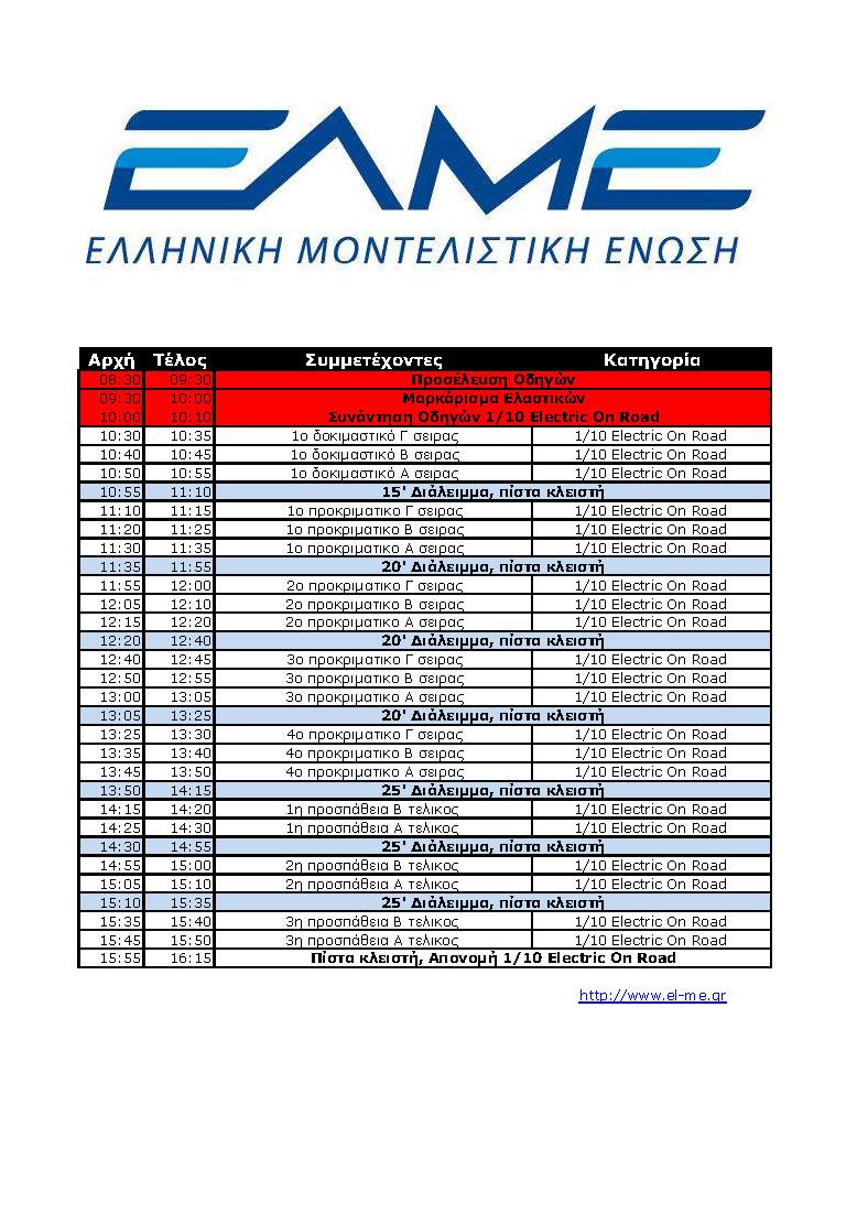 Ημερήσιο πρόγραμμα αγώνα 1/10 EP On Road 22/05 - ΕΛ.Μ.Ε.